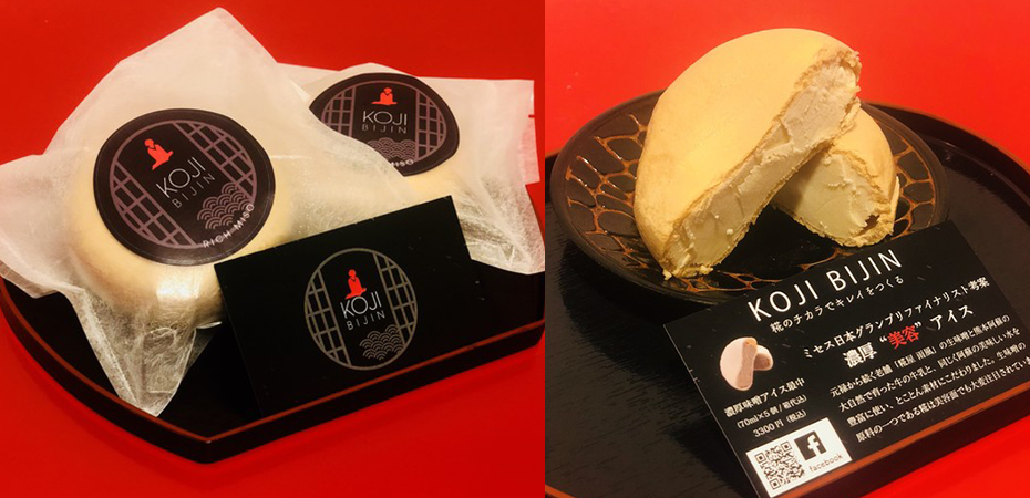 濃厚味噌アイスは元禄から続く老舗「糀屋 雨風」の堺味噌(白味噌)と熊本阿蘇の大自然で育った牛の牛乳と、同じく阿蘇の美味しい水を豊富に使い、アイスクリーム専門店の方と何度も打ち合わせをして数々の試作品を作り、試行錯誤のうえ誕生したアイスです。それを溶けてきても手を汚さず、スプーンをつかわなくても手軽に食べていただける手土産にも喜んでいただけるよう最中で包みました。
